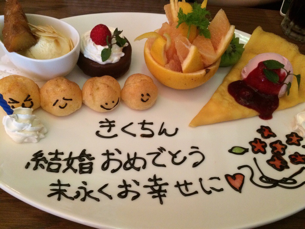 先日、某百貨店の店内案内をしていた時の、同期 きくちんの結婚祝いランチをしました(^^)